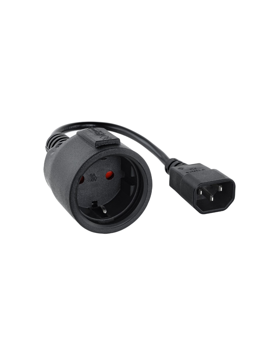 Cable adaptador C14/M a CEE7/H, 16A, 25cm.