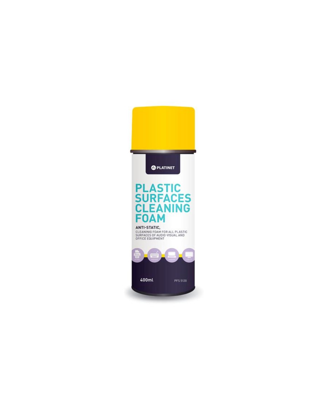 Espuma antiestática para la limpieza de superficies de plástico, dispositivos audiovisuales y de oficina(monitores, fotocopiadoras, impresoras, teclados, portátiles, electrodomésticos).